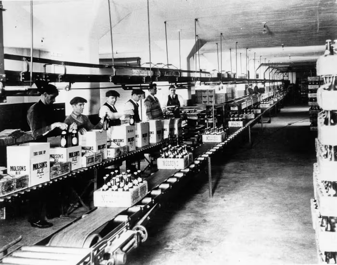En 1844, la brasserie commence à embouteiller sa bière dans des bouteilles bouchées et étiquetées. À une certaine époque, la production de bière dépasse l’approvisionnement en bouteilles, ce qui amène la corporation Molson à acquérir une usine de fabrication de bouteilles à Port Hope, en Ontario, en 1851.